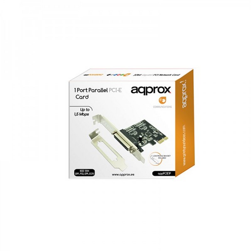 Aumenta las posibilidades que le ofrece su equipo gracias a esta tarjeta PCI-E de perfil alto y bajo de Approx, que le proporcionará un nuevo puerto paralelo adicional (con una tasa de transferencia de hasta 1.5 Mbps) con el que podrás conectar cualquier periférico compatible.