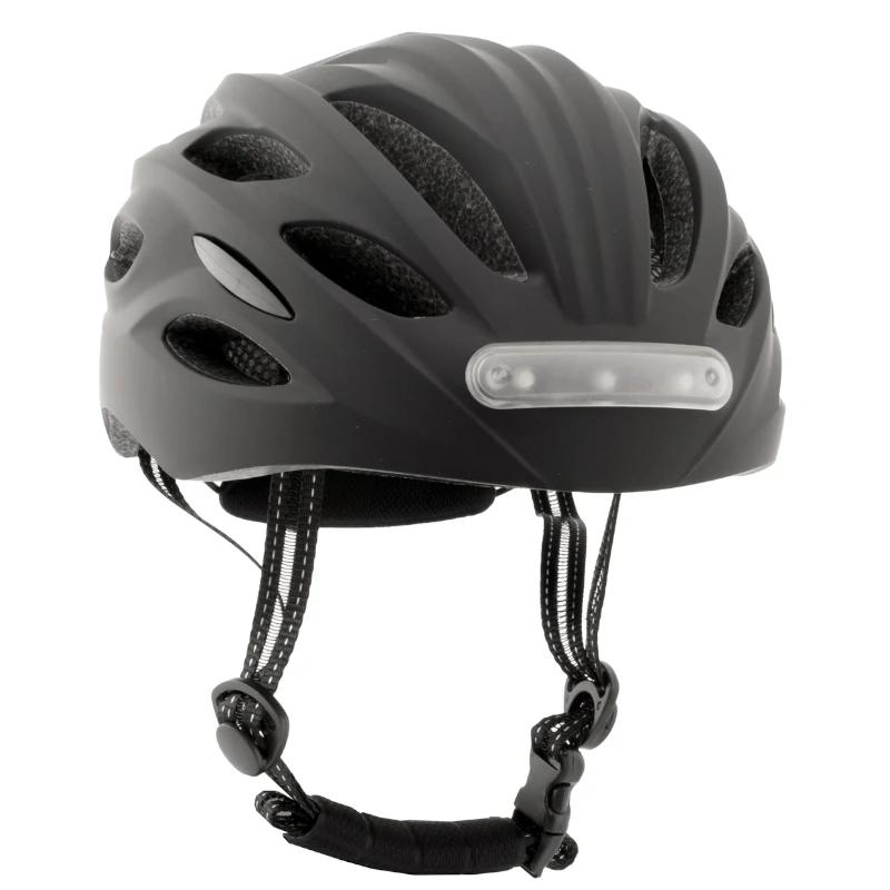 Casco para patinete eléctrico o bicicleta con LED frontal blanco y LED trasero rojo para una visibilidad mejorada.
