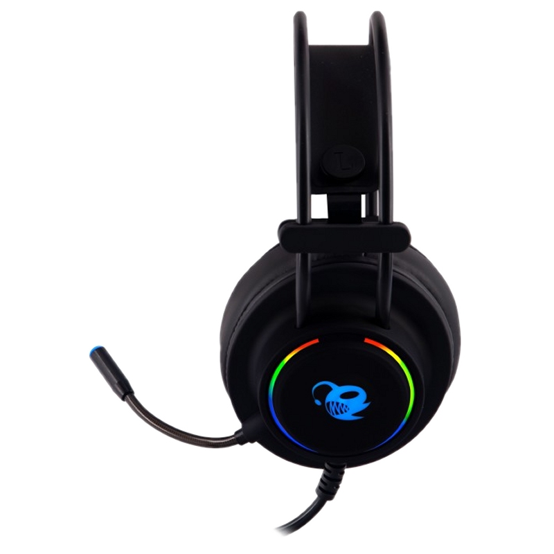 | Caracteristicas | Auriculares – Diámetro: 50mm – Rango de frecuencia: 20Hz ~ 20kHz – Impedancia: 32 Ohm – Sensibilidad: 116 dB +/- 3 dB Micrófono – Tipo: Omnidireccional – Dimensiones: Diámetro 5mm x 1.5mm – Impedancia: 2.2 kOhm – Sensibilidad: -38 dB +/- 2 dB – Longitud de cable: 2.2 metros (aprox) – Conector de audio: Doble jack de 3.5mm (aricular + micrófono) – Conector USB: Para iluminación – Controles: Volumen – Color: Negro – Peso: 355 g. Otros – Cable conversor doble jack a combo-jack para consola – Compatibilidad: PC y algunas consolas |