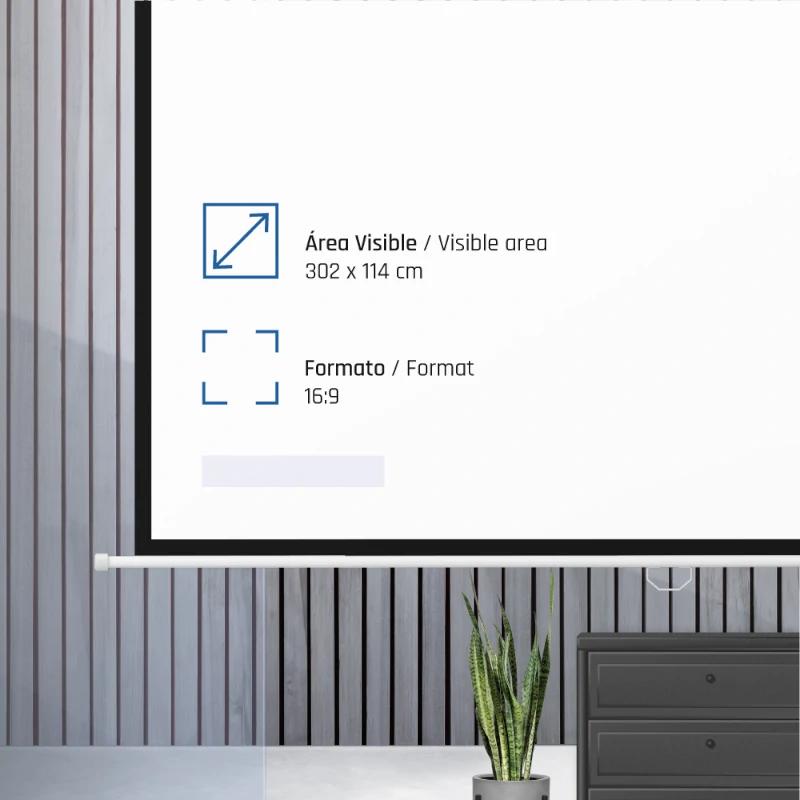 | Otras Características | – Factor de ganancia: 1.0. – Auto-Stop: ajustable a cualquier altura – Material cajetín: acero – Puede colocarse en techo o pared – Trasera negra opaca – Bordes negros de 3 cm a la izquierda y derecha – Fácil montaje – Alta calidad y durabilidad – Ideal para cine en casa y salas de conferencias – Ideal para cualquier tipo de proyector, SVGA, XGA, 3D, HD, Full HD y 4K | |