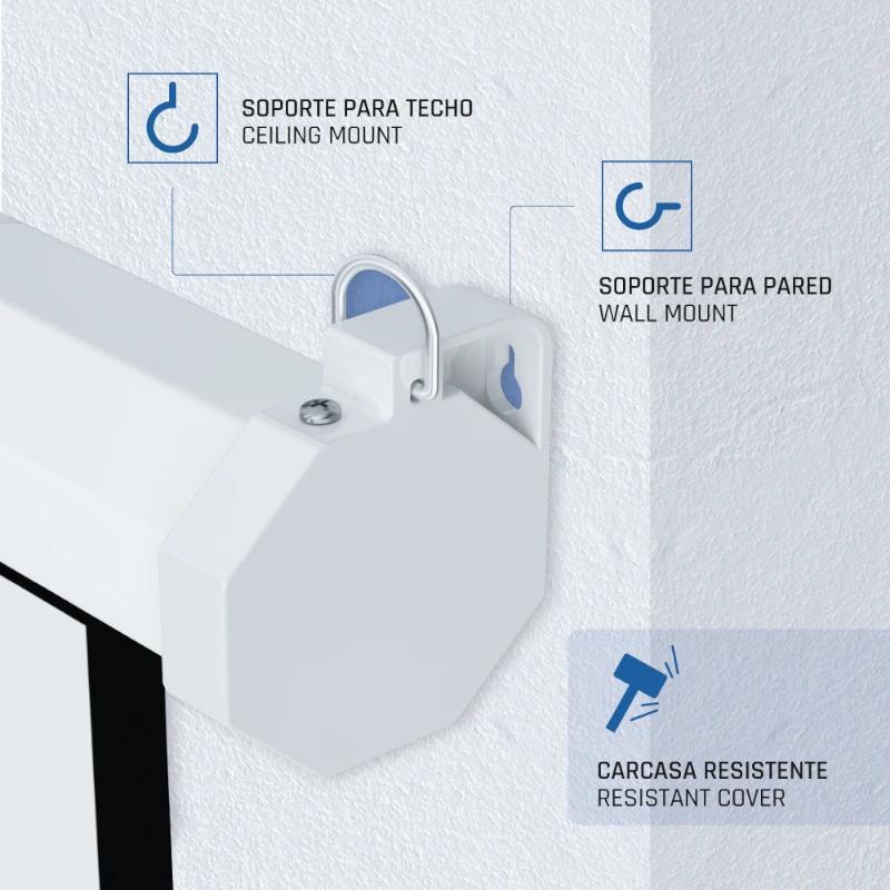 Con una amplia oferta que se adapta a todos los gustos y necesidades, iggual cuenta con pantallas manuales que podrás colocar en el techo o en la pared, para disfrutar de la mejor perspectiva. Además, ofrece una opción con trípode muy cómoda de transportar y dispone de pantallas eléctricas panorámicas y cuadradas, con control de pared incorporado.